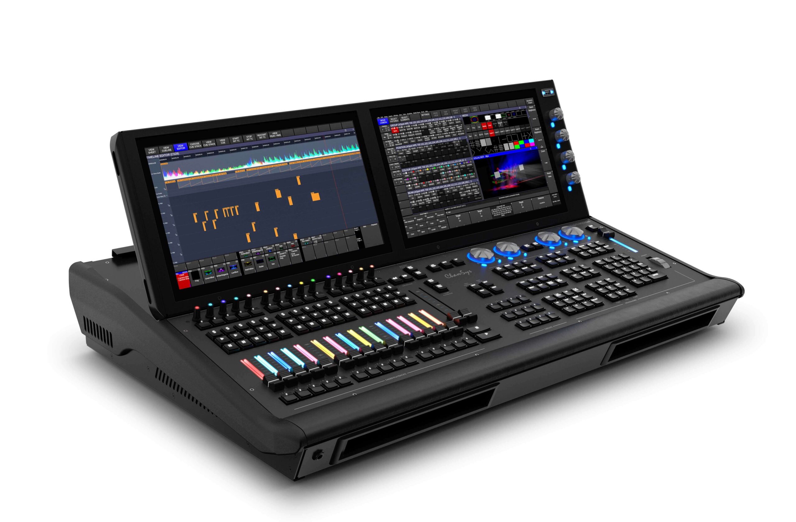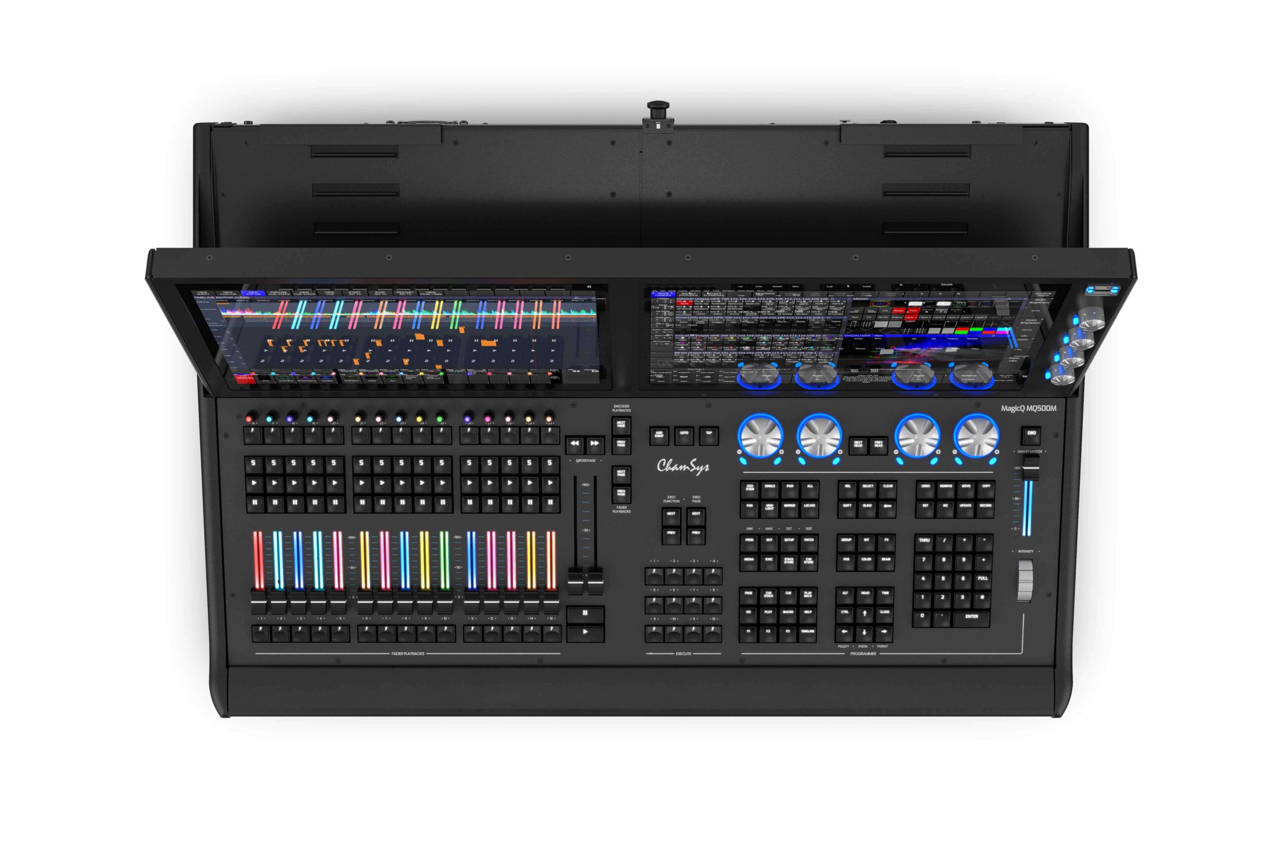 Световая консоль MagicQ MQ500 M 256DMX потока. Моторизированные фейдера. 15 энкодеров для управления плейбеками. 8 энкодеров управления. DMX порты: 4. Сетевые порты: 4. Внешний порт для Монитора: 1, с разрешением до 1980×1080. Вход\выход Midi.Вход\выход LTC.Встроенный UPS. Двухцветная светодиодная лампа. Чехол-накидка. Электропитание: от 110 до 240 В. Ширина: 860 мм. Глубина: 670 мм. Высота: 90 мм, 175 c поднятым экраном.
